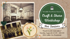 August 2026 Embroidery Senior Workshop – Website Graphics October 2, 2025 by Sarah Parker About Sarah Parker Previous Post:Craft & Share Workshop for Seniors – Punch Needle Embroidery