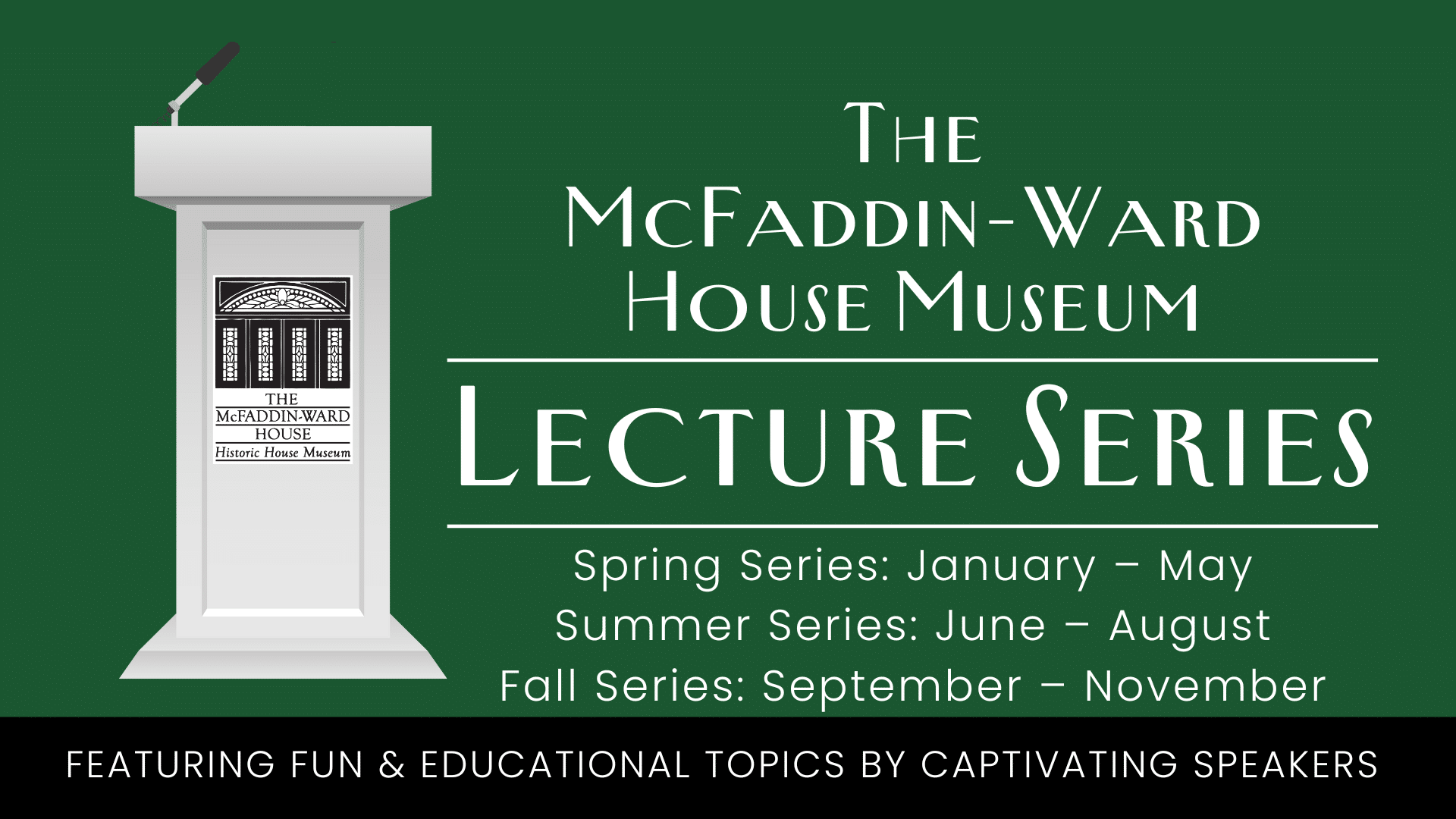 For those unable to attend, the full lecture will be available for viewing on the museum YouTube Channel (youtube.com/@mcfaddinwardhouse), Facebook (facebook.com/McFaddinWardHouse), and website (mcfaddin-ward.org/about/videos) after the event.