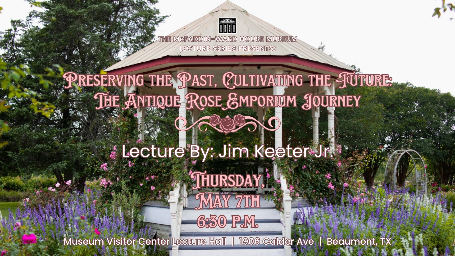 Join the McFaddin-Ward House Museum for “Preserving the Past, Cultivating the Future: The Antique Rose Emporium Journey,” a free public lecture presented by Jim Keeter Jr. on Thursday, May 7, at 6:30 p.m. in the museum’s Visitor Center Lecture Hall (1906 Calder Avenue, Beaumont). For the past 40 years, the Antique Rose Emporium, an eight-acre …