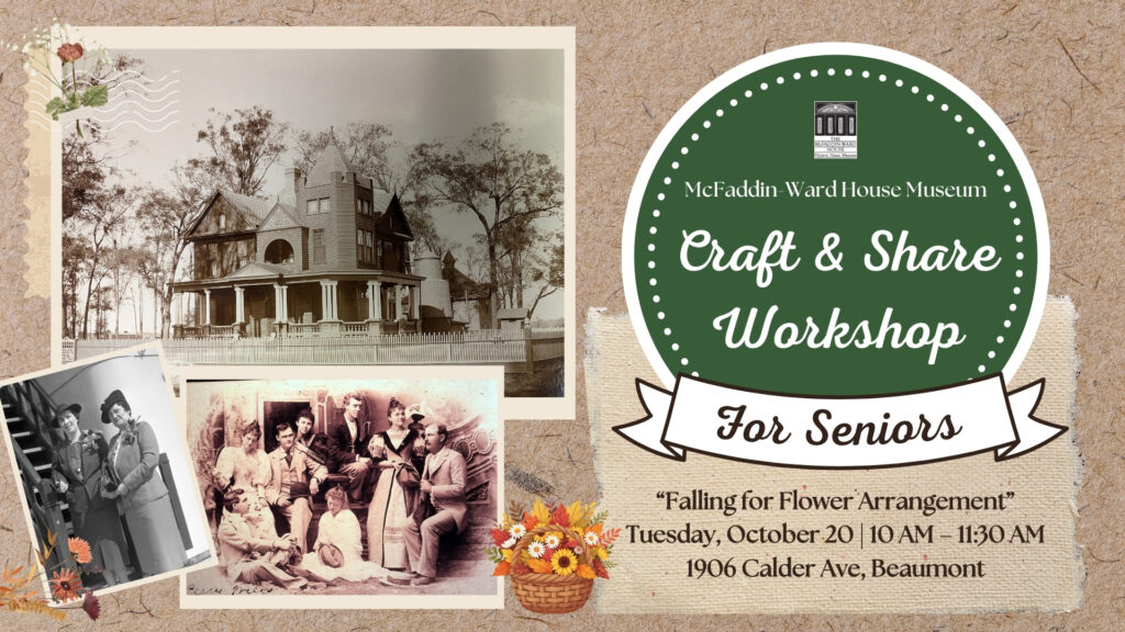 The McFaddin-Ward House Museum invites senior adults (65+) to join in our “Falling for Flower Arrangement” Craft & Share Workshop on Tuesday, October 20, from 10 to 11:30 a.m. in …