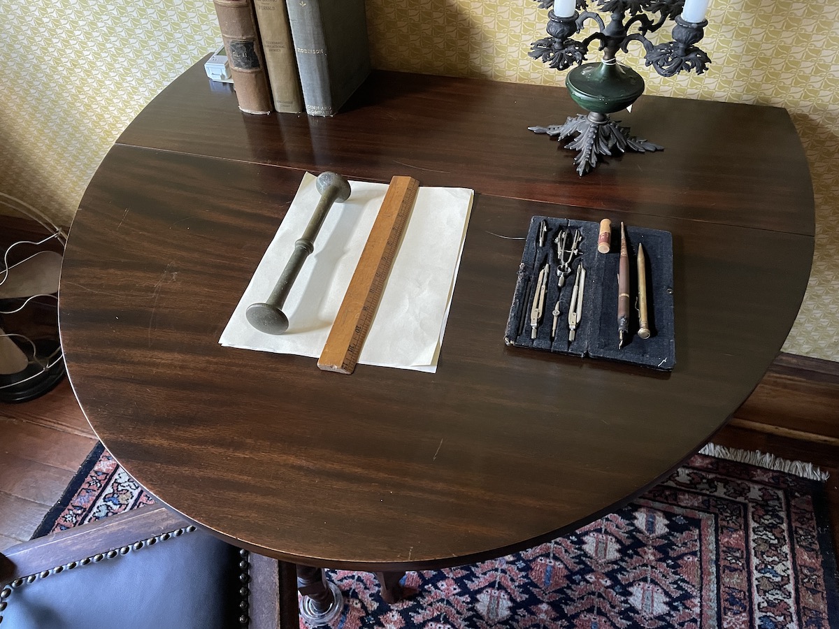 The pieces seen in Caldwell’s bedroom, including this writing table, closely represent his interests and personality.