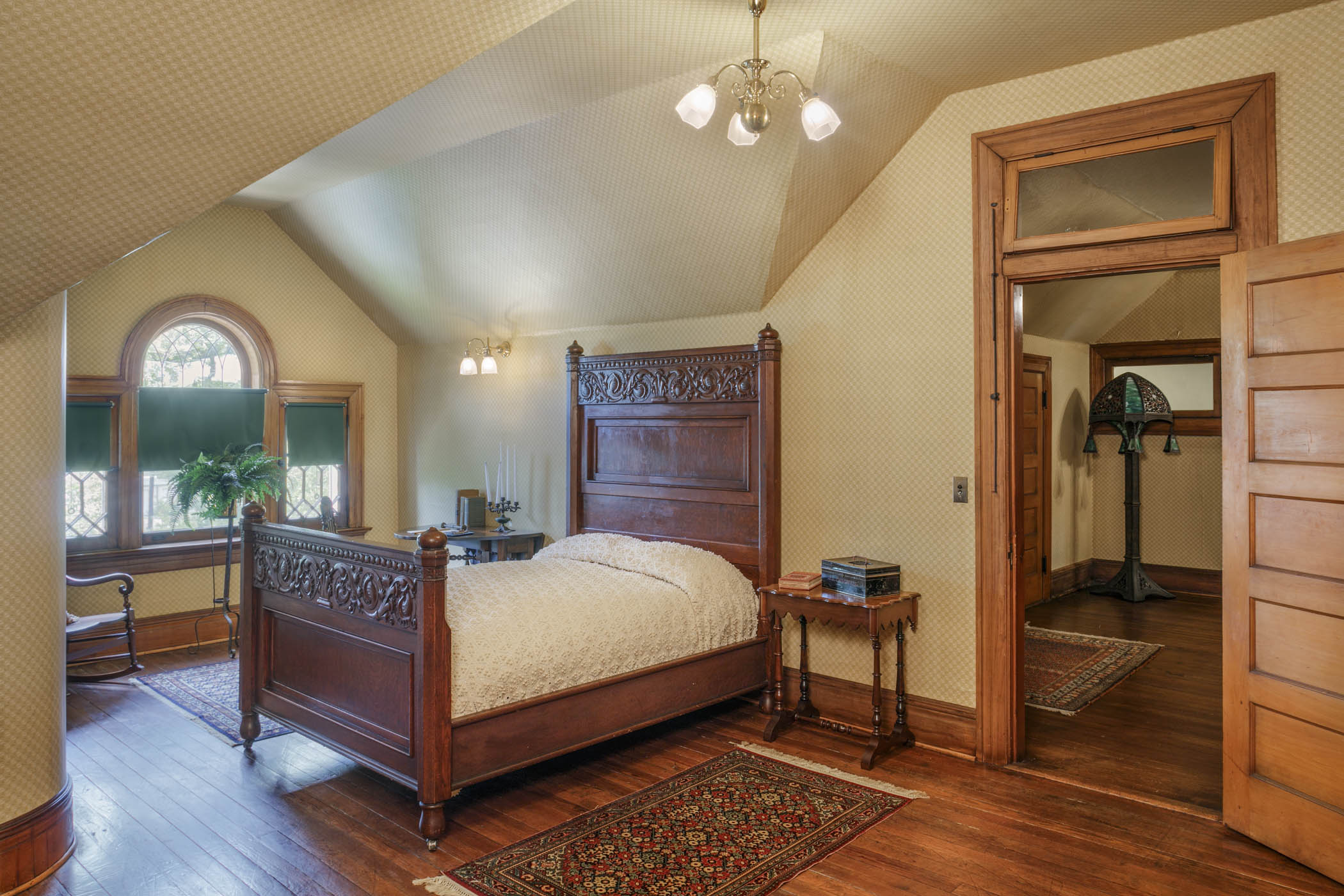 The angled walls of this room reflect the pitch of the roof, appearing as ceiling space. The family used these surfaces as wall space.